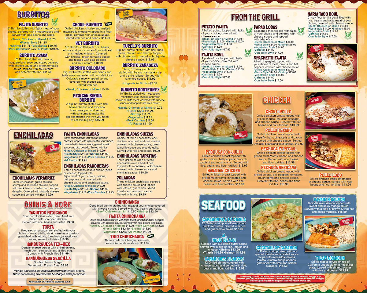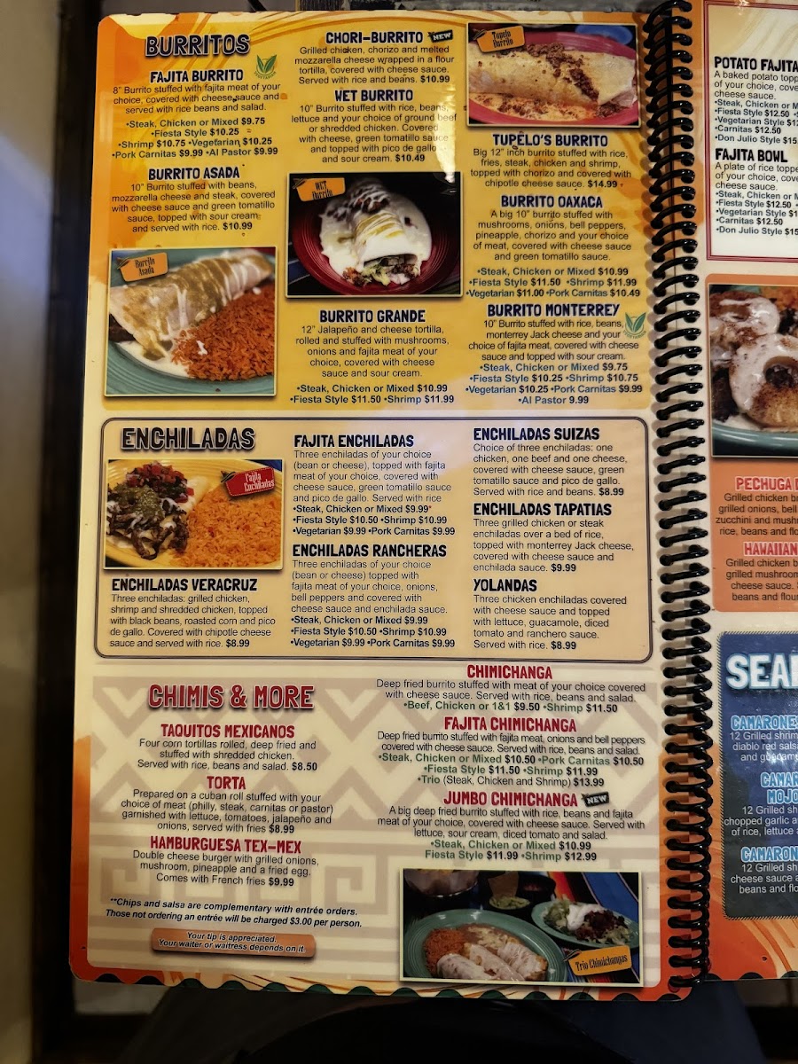 Shrimp nestled in a flour tortilla; choose from Burritos, Quesadillas, or Chimichangas.